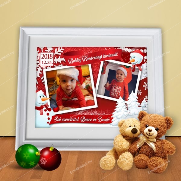 Emlékidéző Képünk fekvő tájolással több színben (mintában) is elérhető. A kép magában foglalja a Karácsonyi jókívánságon felül a gyermekek fényképeit és keresztneveit, valamint az ajándék átadásának időpontját.